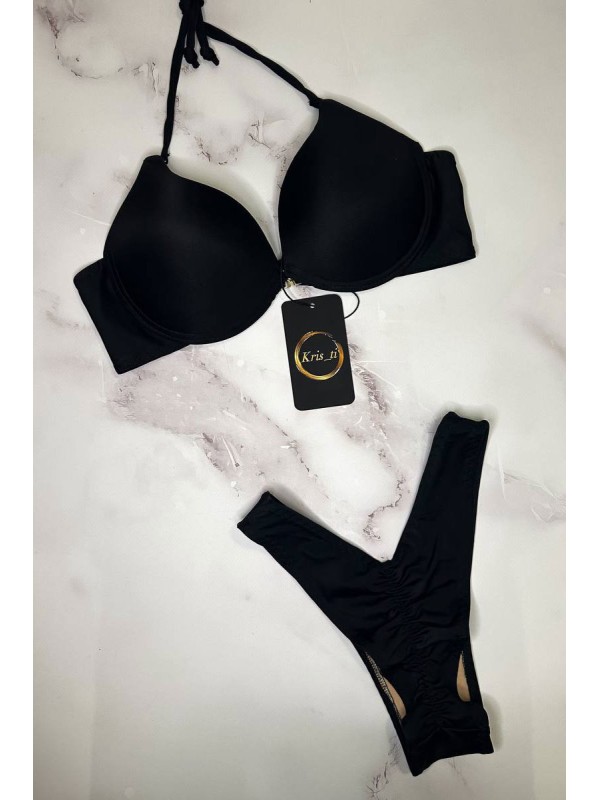 Черный женский купальник push-up 3D завышенные бразилиана танго Анжелика