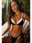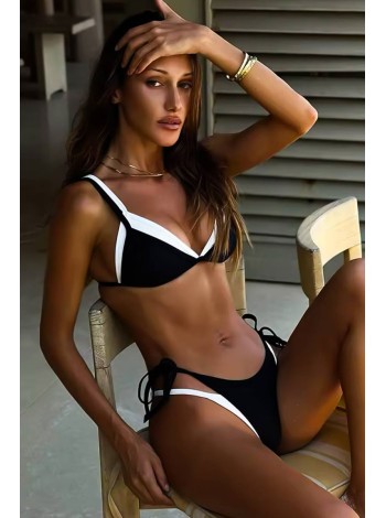 Жіночий купальник трикутник трикутник. Пошитий у чорному стильному кольорі з білими вставками. Бюст - трикутник зі знімними чашками. Трусики - бразиліана. Ця модель купальника дуже зручна для максимальної засмаги і відмінно підкреслить Вашу фігуру!