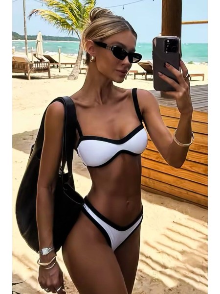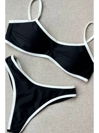 Чорно-бежевий купальник бандо з чашками плавками завищеними тангоСтильний купальник з завищеною поса..