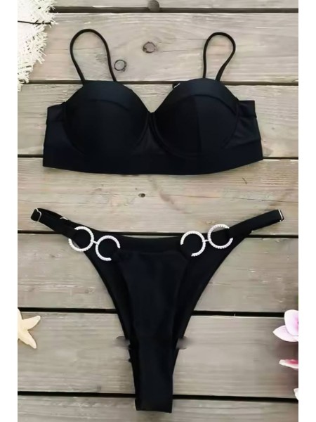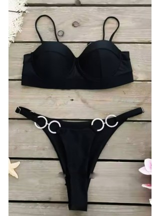 Чорний жіночий купальник push-up 3D бразиліана на зав'язках АнжелікаЖіночий яскравий купальник з pus..