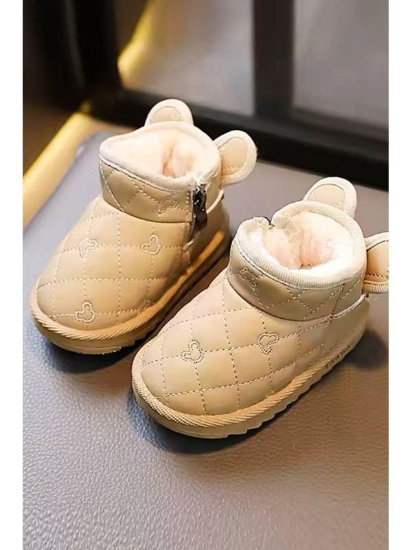 Детские белые молочные угги с ушками микки на девочку, артикул КД-0101