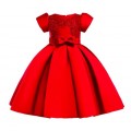 Вечернее красное детское платье с бантом + повязка, артикул КД-0043Вечернее атласное платье для дево..