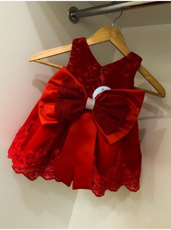 Вечернее атласное платье для девочки от 6 месяцев до 3 лет. Застегивается сзади на змейку. Украшено окантовкой из кружева и гипюра. Сзади - ажурный съемный бантик, придает изюминки данной модели. Сделана в двух модных расцветках - насыщенно красном и нежно пудровом цвете. Юбка сделана из слоя атласа, котона и сетки. В комплекте с платьем идет повязка на голову, которая дополнит нарядный образ малышки.