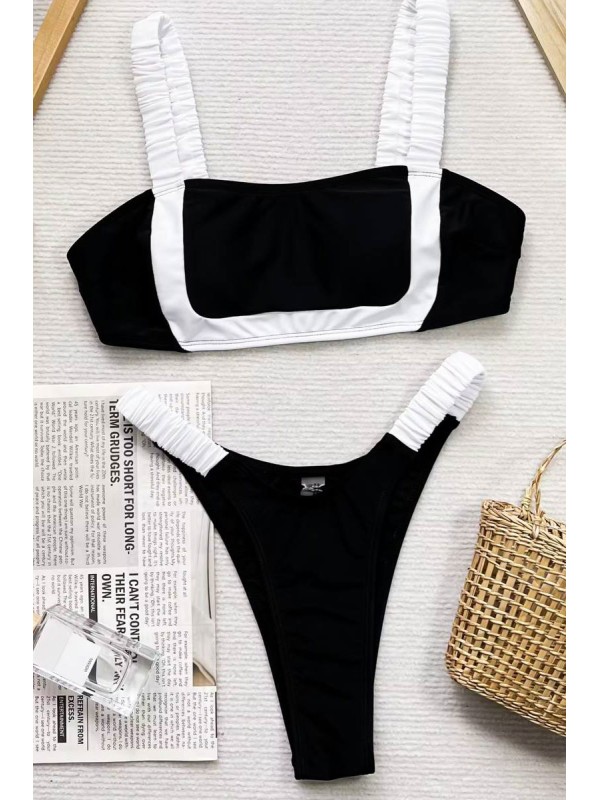 Черно-белый купальник с топом и чашками бразилиана на резинках