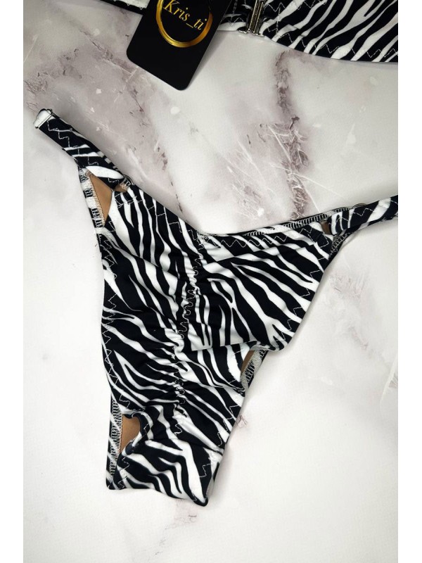 Черно-белый купальник зебра принт push-up 3D бразилиана на регуляторах Анжелика
