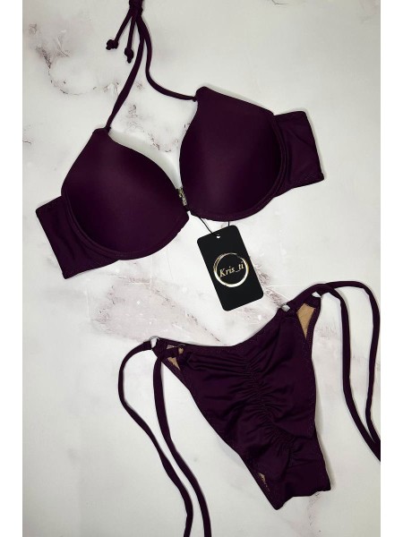 Бургунді жіночий купальник push-up 3D бразиліана на зав'язках АнжелікаЖіночий яскравий купальник з p..