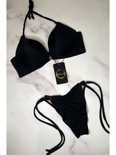 Чорний жіночий купальник push-up 3D бразиліана на зав'язках АнжелікаЖіночий яскравий купальник з pus..