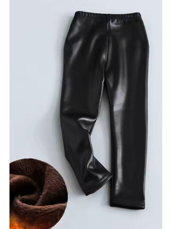 Чорні теплі лосини на дівчинку з екошкіри, артикул КД-0114