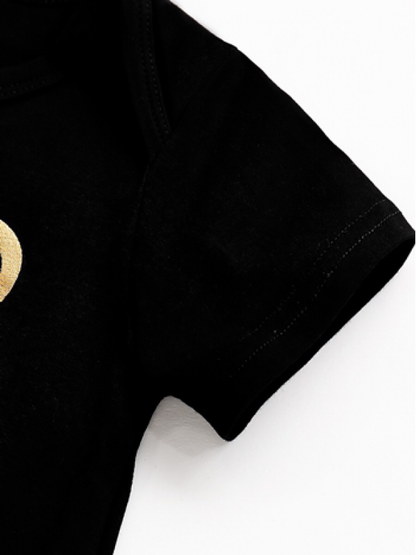 Гарний бодік для малюків від 1 до 18 місяців з коротким рукавом. Застібається на кнопочки. Модель виконана з 100% бавовни. Зроблено в модному чорному кольорі з золотим написом "Mini Boss". А рожевий бантик додасть ошатний вигляд малюкові.