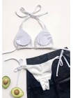 Жіночий роздільний купальник в рубчик. Вгору-шторки, всередині зі знімними чашками. Трусики - бразилиана із завищеною посадкою. Модель пошита в стильному білому кольорі.