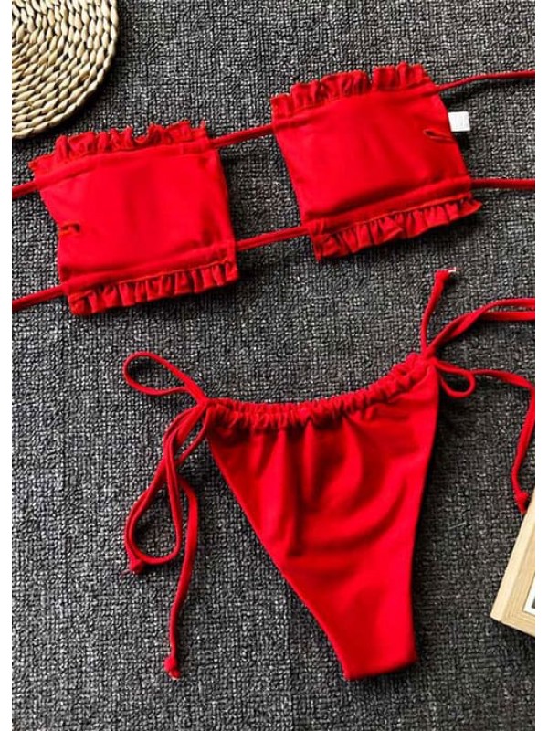 Білий роздільний купальник бандо з бразилиана на зав'язках