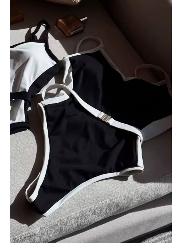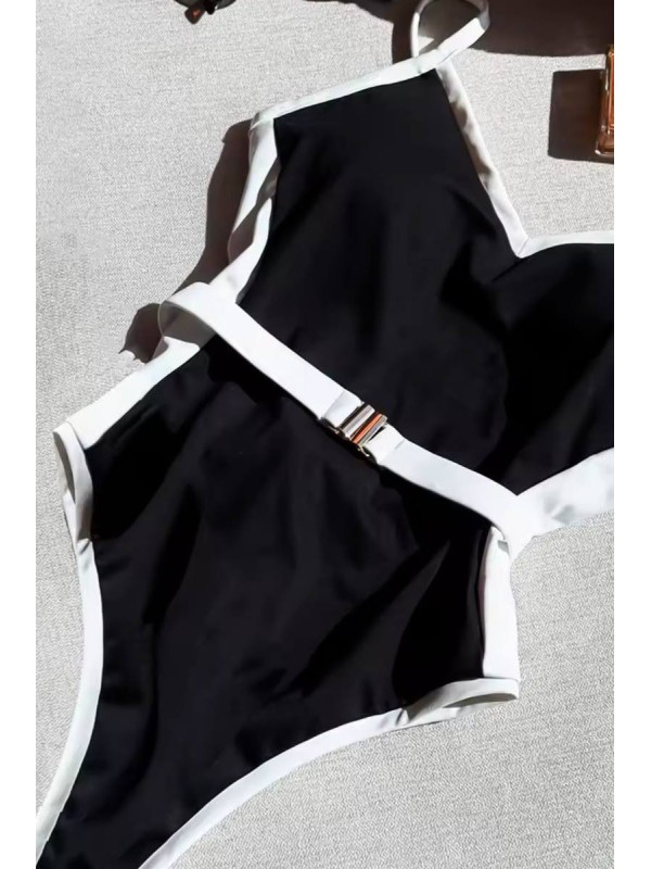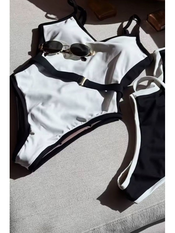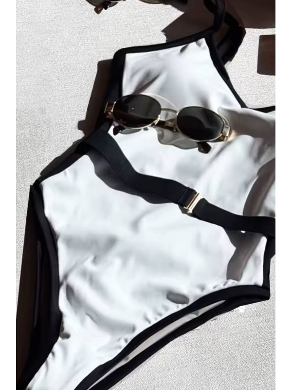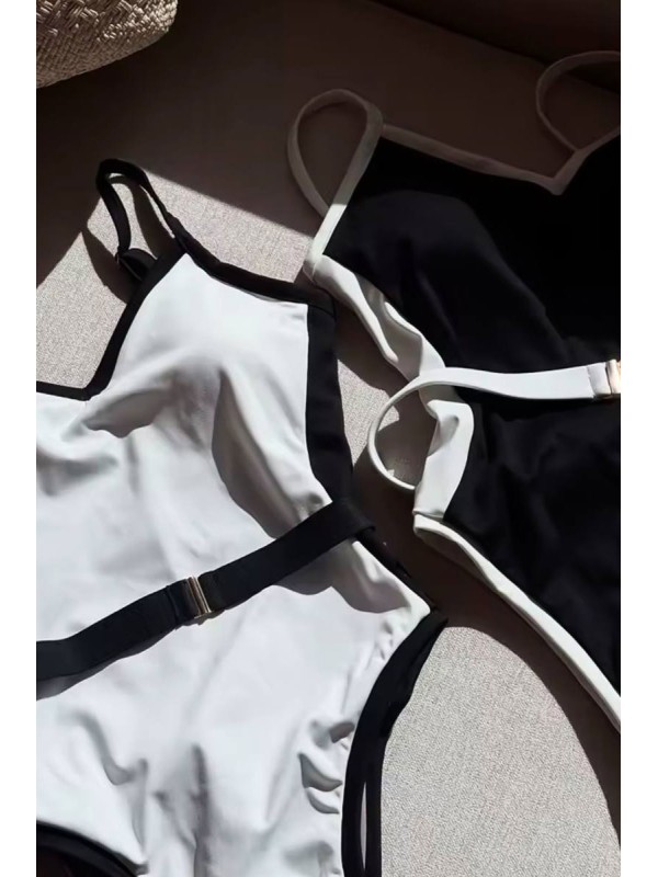 Універсальний суцільний купальник із чашками. Що прекрасно підкреслює плавність вигинів жіночого тіла. Завдяки наявності знімних чаш-вставок дозволяє красиво підкреслити груди. Прикрашений поясом. Плавки - завищені бразиліана. Модель пошита в білому чорному кольорі.