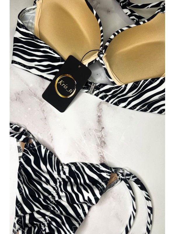 Чорно-білий купальник зебра принт купальник push-up 3D бразиліана на зав'язках Анжеліка