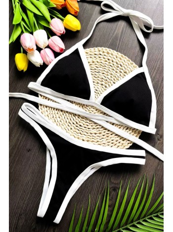 Чорно-білий жіночий купальник трикутник у рубчик