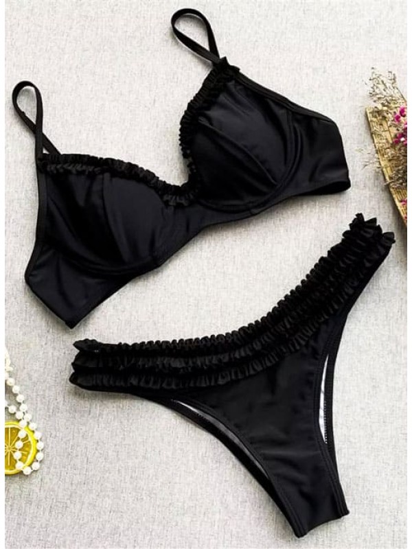 Чорний роздільний купальник із рюшками бразиліана