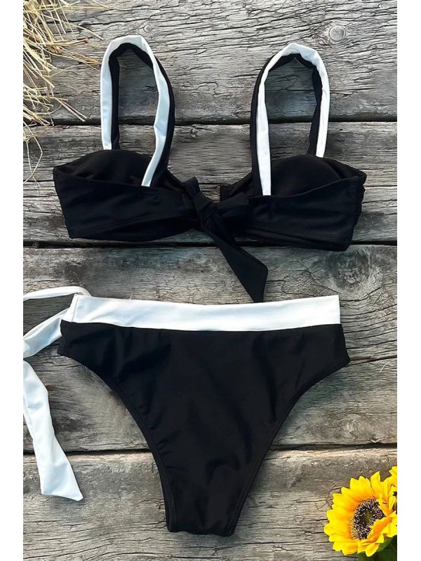 Чорний з білим жіночий купальник з високими плавками бразиліана