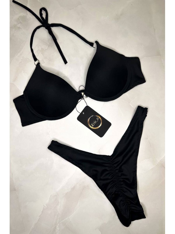 Чорний купальник push-up 2D з плавками завищеними танго Анжеліка
