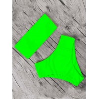 Яскравий зелений шовковий купальник трикутник на зав'язках