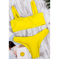 Яскравий жовтий купальник трикутник шторки на зав'язках бразіліана