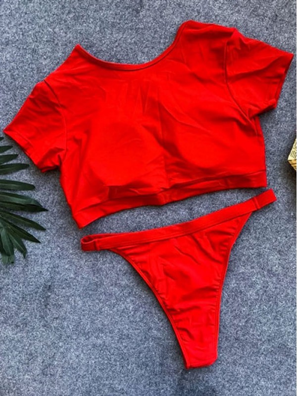 Представляємо Вам стильний купальник з топиком. Топ зі знімними чашками. Низ зроблений - високими бразилиана. Пошитий в двох модних кольорах: червоний і салатовий. Дана модель дуже зручна і практична, можна носити як купальник і фітнес костюм.