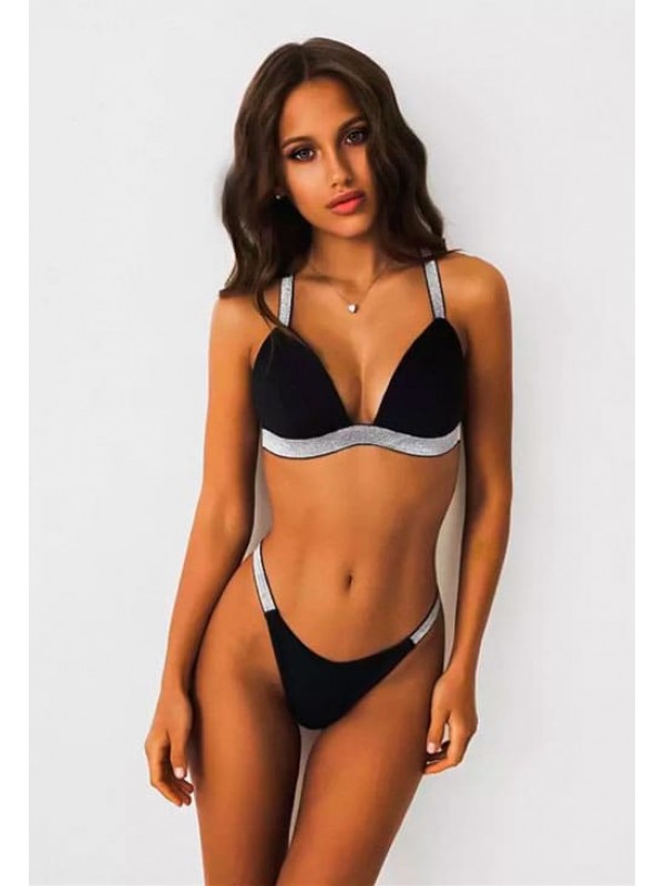 Шикарний роздільний купальник на бретелях. Бюст - з твердої чашкою, добре тримає форму. Бретелі зроблені навхрест, можна регуліровать.Трусікі - бразільяна з боків на гумці, відмінно підкреслять Вашу фігуру. Дана модель прикрашена срібними вставками, красиво переливаються на сонці. У цьому купальнику Ви не залишитеся непоміченою!