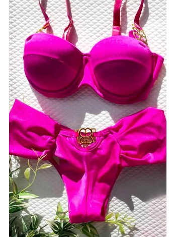 Жіночий роздільний купальник. Зроблений у двох модних кольорах. У неоновому рожевому та чорному кольорі. Трусики – бразиліана. Бюст - топік з пуш-ап, добре тримає форму. Дана модель, дуже зручна та практична. Шикарно виглядає на засмаглому тілі.