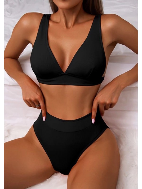 Жіночий роздільний купальник у рубчик. Вгору-шторки, усередині зі знімними чашками, з рубчика. Трусики – бразиліана із завищеною посадкою. Модель пошита в двох модних кольорах: чорний, помаранчевий, лавандовий.
