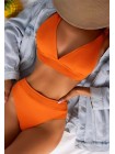 Яскравий помаранчевий купальник з високими плавками в рубчик