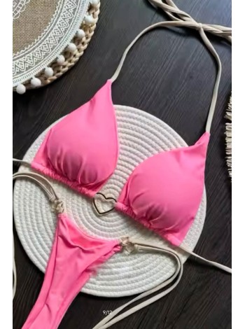 Рожевий купальник трикутник на зав'язках стрінги з сердечками