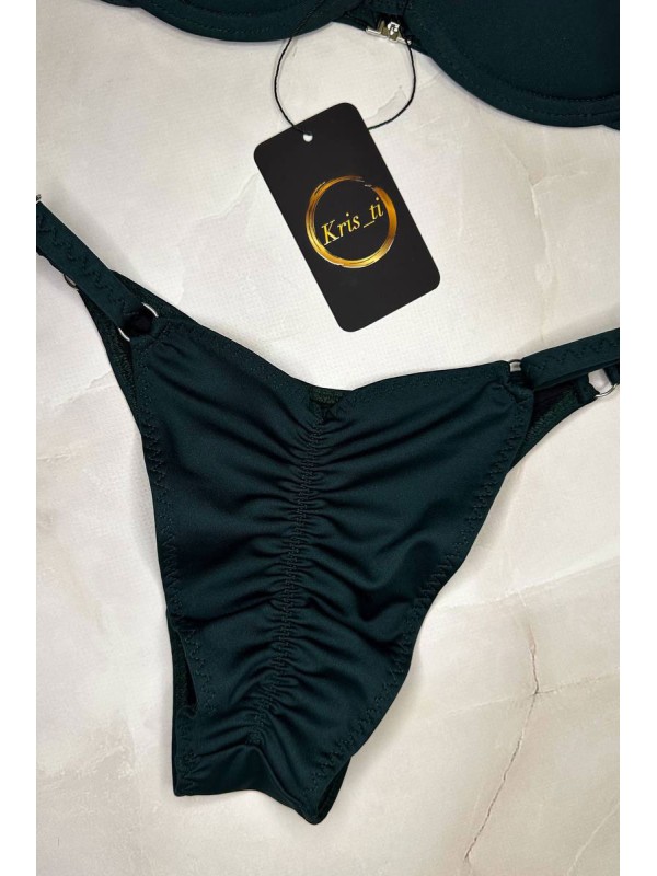 Темно-зелений купальник з push-up 2D бразиліана на регуляторах Анжеліка