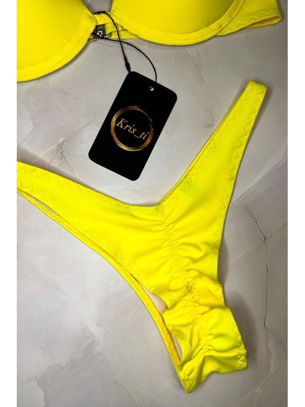 Жовтий купальник жіночий пуш ап 2D завищені танго Анжеліка