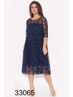 Вечірня нарядна сукня вільного крою для повних жінок. Сукня - трапеція прекрасно підходить пані з пишними формами, приховуючи ті частини тіла, які краще не виставляти. Ця модель має геометричний крій без лінії талії, тому він не сковує руху, дозволяючи почувати себе вільною у будь-якій урочистій ситуації. Верх сукні і рукава виконані з декорованої сітки. Основа - підкладка трикотажна.