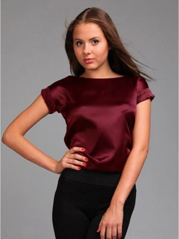 Атласна блуза з коротким рукавом "LADY GR" від Woman - shop - поєднання відмінної якості і прийнятної ціни!