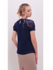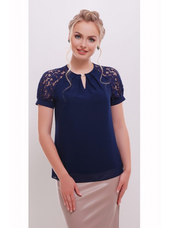 Біла шифонова блузка з вставками з гіпюру. Блузка вільного фасону. Рукав реглан виконаний з красивого гіпюру, на манжеті внизу. Круглу горловину прикрашає золота застібка, переходить в невеликий трикутний виріз. Сборочкі візуально збільшують груди. Таку блузку можна носити в школу, інститут, в якості офісного варіанту.
