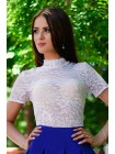 Класичний гольф - американка з коротким рукавом в мереживний інтерпретації. Облегающая модель, напівпрозора модель підкреслює всю красу жіночої фігури. Дозволяє жінці виглядати привабливо і сексуально. Відмінне доповнення до комплекту з брюками, спідницею або діловим костюмом.