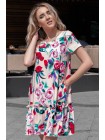 Повітряне плаття з красивим квітковим принтом відмінний повсякденний варіант літнього гардеробу. Прикрашає модель - широка пишна оборка по низу. Довжину міні, не перешкода для дам з пишними формами, завдяки вільному силуету. Легка тканина добре пропускає повітря і до того ж не мнеться.