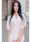 Оригінальна річна блузка з легкої тканини, популярних кольорів. Вільний фасон прекрасно виглядає з широким коротким рукавом. Рукав якраз і є тією деталлю, який створює неповторний стиль цієї моделі. Об'ємний рукав манжет на лацкан просто супер. А горловина навпаки дуже стримана - невеликий воротничек стійка плавно переходить в невеликий виріз. Тому, блузку дуже зручно одягати. Сміливо поєднуй цю модель з джинсами, брюками, спідницею і створюй нові образи.
