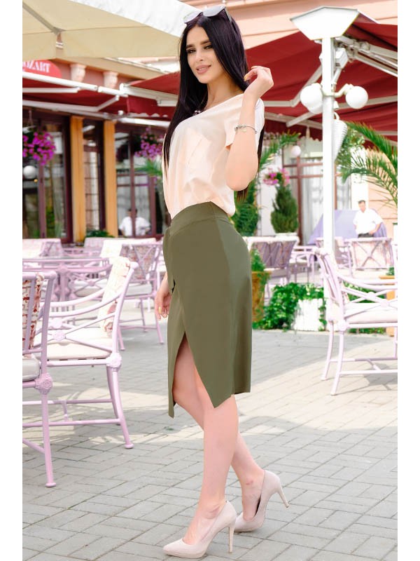 Оригінальна і легка спідниця на запах відмінно підійде для літнього гардеробу. Класична довжина міді та прямий силует дозволяє надягати спідницю за будь-що, просто підберіть відповідний верх з нашої колекції блузок. Фасон на запах створює гарний низ, який пікантно відкриває ноги. До того ж, ідеально сидить в будь-якому розмірі, в тому числі у великих розмірах. Ви завжди можете купити красиві літні спідниці за цінами виробника в нашому інтернет - магазині.Матеріал: софтРозміри: 42, 44, 46, 48, 50, 52, 54, 56, 58, 60Довжина спідниці: 55 - 63м.