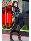 Верхній жіночий одяг з екокожі зараз на піку популярності. Довге пальто з екокожі виглядає розкішно, стильно, до того ж дуже практичні і доступні за ціною. У цій моделі використаний дорогий якісний матеріал. Штучна замша виконує в моделі роль утеплювача і декоративного елемента. Красиво виглядає широкий відкладний комір і накладні кишені отделанни замшею. Пальто без застібки збирається за допомогою пояса. Пальто такого фасону красиво виглядає на фігурах будь-якого розміру. І пропонується в великих розмірах.