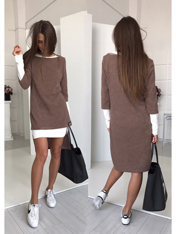 Модний повсякденний комплект для сучасної модниці. Практична і зручна модель включає сукню і туніку. Сукня приталеного крою, виконано з трикотажу, рукав довгий з вирізами на плечах. Низ із закругленими розрізами з боків. Туніка виконана з м'якої Ангори. Горловина у вигляді човника, рукав 3/4. Оригінальною особливістю цієї моделі є поєднання кольорів : білої сукні і туніки - чорного, бордового або білого кольору. Елементи комплекту відмінно поєднуються між собою, або можна комбінувати з іншим одягом.