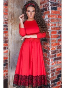Гарне плаття з пишною спідницею для офісу, романтичне побачення, святкова вечеря, випускний. Приталені модель декорована широким мереживом по низу. Талію можна підкреслити за допомогою пояса, який йде разом з сукнею. Виглядає дуже жіночно.