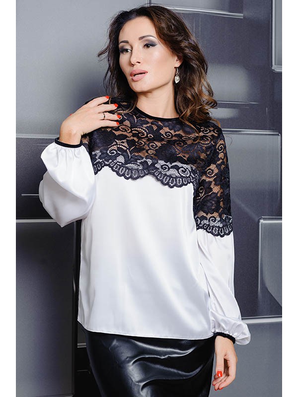 Шовкова блузка з мереживом Мері, артикул LB - 30 - 324