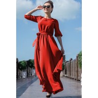 Шифонове плаття завжди виглядає жіночно і романтично. Наша нова модель не виняток, але на відміну від більшості пропонованих моделей це плаття з довгим рукавом. Фасон моделі на запах в поєднанні з расклешенной спідницею, створюють гарний силует пісочний годинник. Вільний довгий рукав прісобранная по краю. Прекрасний наряд для весни або річного вечерочка. Сукня виконана з подвійного шифону, тому що шифон напівпрозорий матеріал.