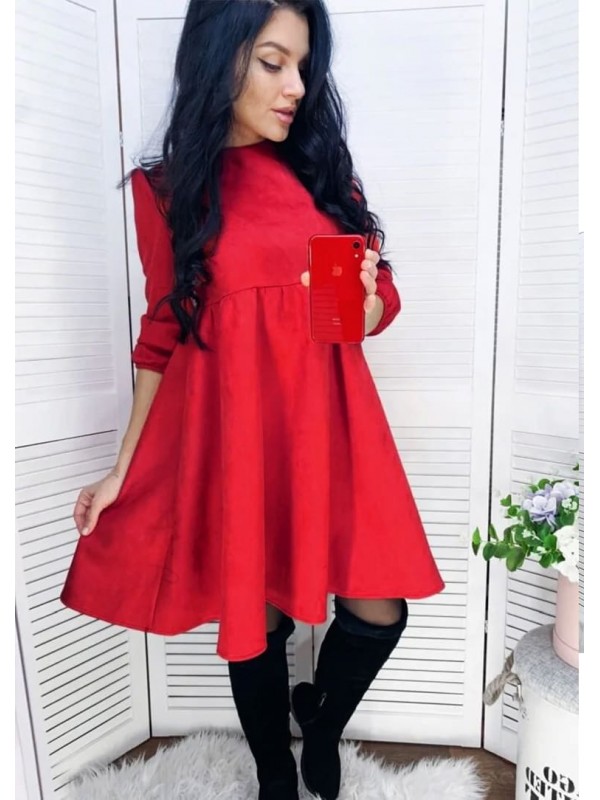 Демісезонна замшева сукня вільного крою - модна новинка від Woman-shop. Модель із завищеною талією, силует трапеція. Жіноча сукня виконана з м'якого замша на дайвінгу, не електризується, добре тримає форму. Рукав довгий, внизу на резиночке, що дозволяє регулювати його висоту. Горловина кругла. Но спинці блискавка. Замшева сукня середньої довжини підійде для створення повсякденних і нарядних образів.