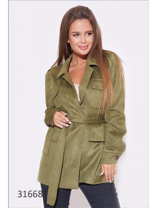 Замшева куртка жакет з поясом на осінь-весну, артикул 831668-70