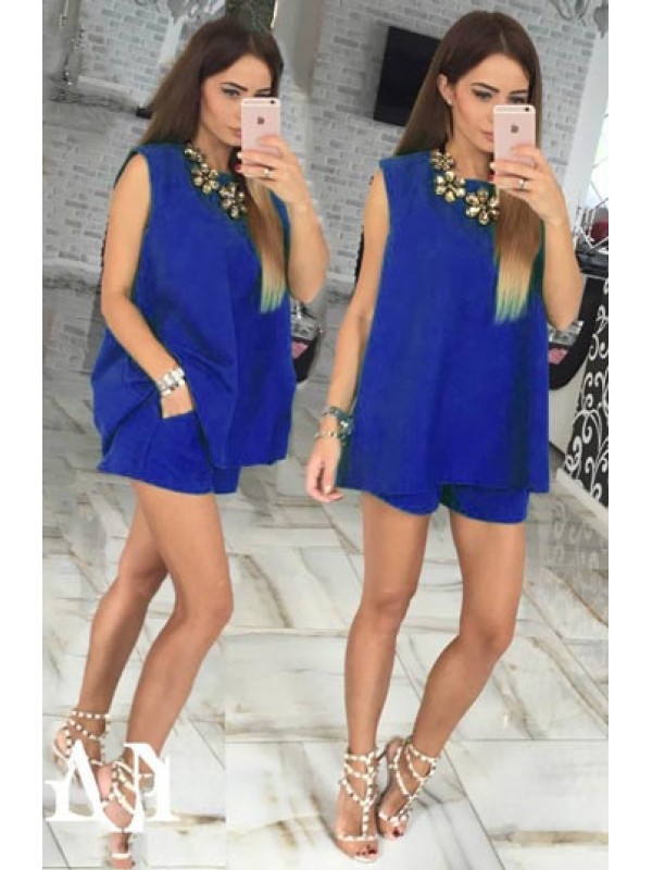 Легкий літній жіночий костюм c габардину. Костюм складається з шортів і блузи-розлітайки. Блуза вільного фасону що дуже зручно в жарку пору року. Шорти на поясі з блискавкою, з боків є кишені. Жіночий костюм такого фасону прекрасно підійде для літнього відпочинку, прогулянки, побачення.